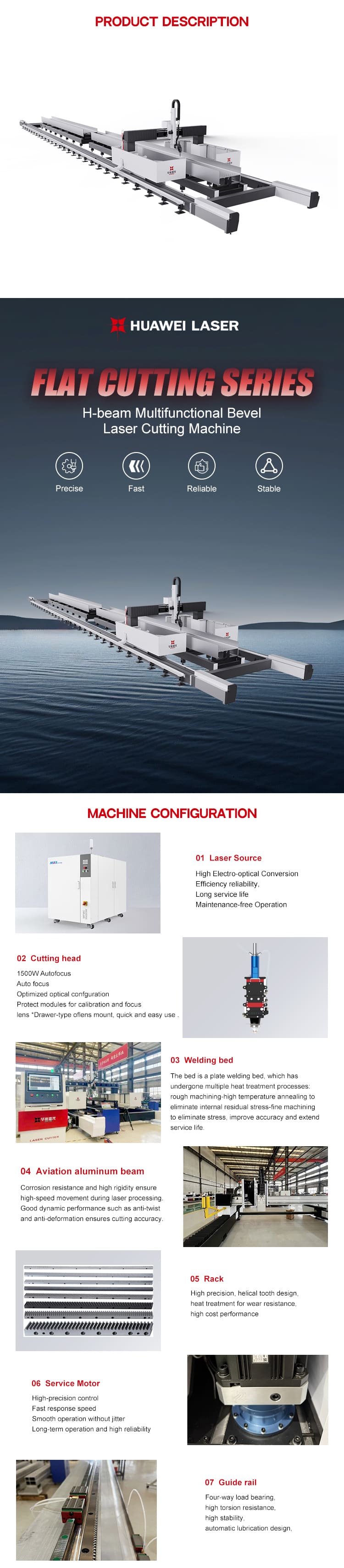 12000W 3D CNC H-зрак ласерска машина за сечење за обработка на метален челик за обработка на метален челик е високопрецизно индустриско решение од Shenyang Huawei Laser Equipment Manufacturing Co., Ltd. брзина, длабока пенетрација и мазни рабови за сечење. Системот за контрола на 3D CNC овозможува сложено и прецизно сечење, задоволувајќи ги потребите на големите градежни, бродоградба, машинско производство и индустрии за преработка на челик. Со стабилни перформанси, мало одржување и долг работен век, оваа машина ги комбинира фабричките цени со напредната технологија, што го прави ваш доверлив избор за сечење тешки индустриски метали.