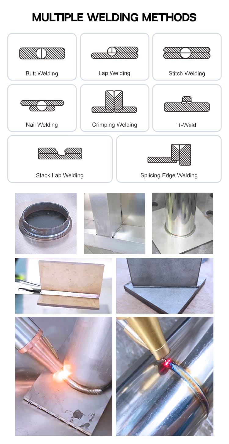 Флексибилната рачна ласерска машина за заварување од 1500W 2000W 3000W е дизајнирана за разновидна обработка на метали, поддршка од нерѓосувачки челик, јаглероден челик, алуминиум и галванизирани материјали.