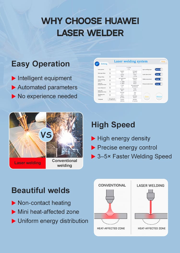 4. Лесно за ракување и учење: Рачното ласерско заварување е едноставно и лесно за учење, заштедувајќи ги трошоците за работна сила и погодно за брза обука и индукција.