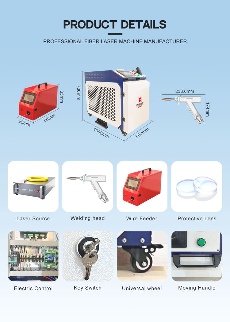 НаHUAWEI ЛАСЕРИндустриска машина за ласерско заварување 1500W 2000W 3000W за изработка на челични конструкциие со високи перформансиРачна машина за ласерско заварувањедизајниран за тешки апликации од челична конструкција. Со стабилен ласерски излез и прецизна контрола, тој обезбедува силна пенетрација, чисти шевови за заварување и сигурна цврстина на споеви за конструктивни челични компоненти. Изграден за индустриска употреба, наHUAWEI ЛАСЕРИндустриската машина за ласерско заварување обезбедува постојани перформанси, ефикасно работење и сигурен квалитет на заварување за проекти за изработка, инсталација и одржување на челични конструкции.